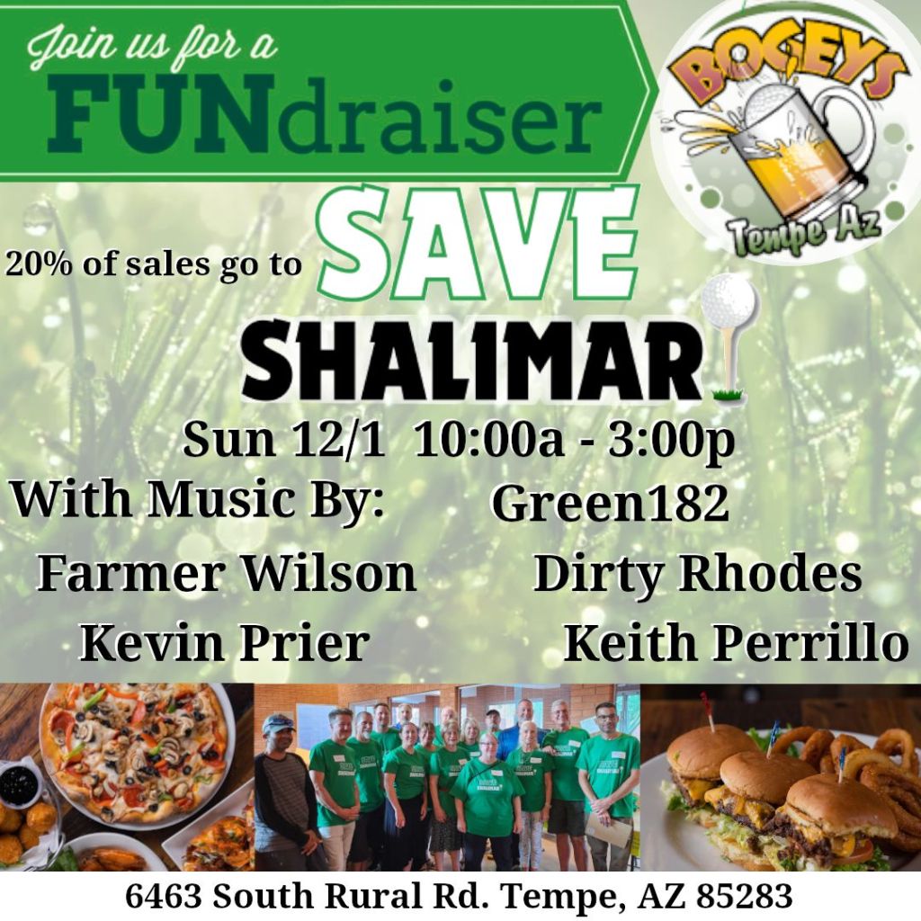 Bands, raffles, t-shirts, and more and 20% of your tab goes to Save Shalimar. All football games will be on!